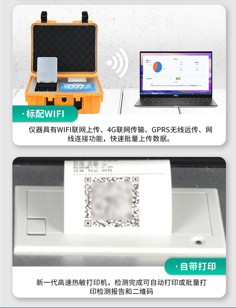 3、新一代高速熱敏打印機,檢測完成可自動打印或批量打印檢測報告和二維碼。