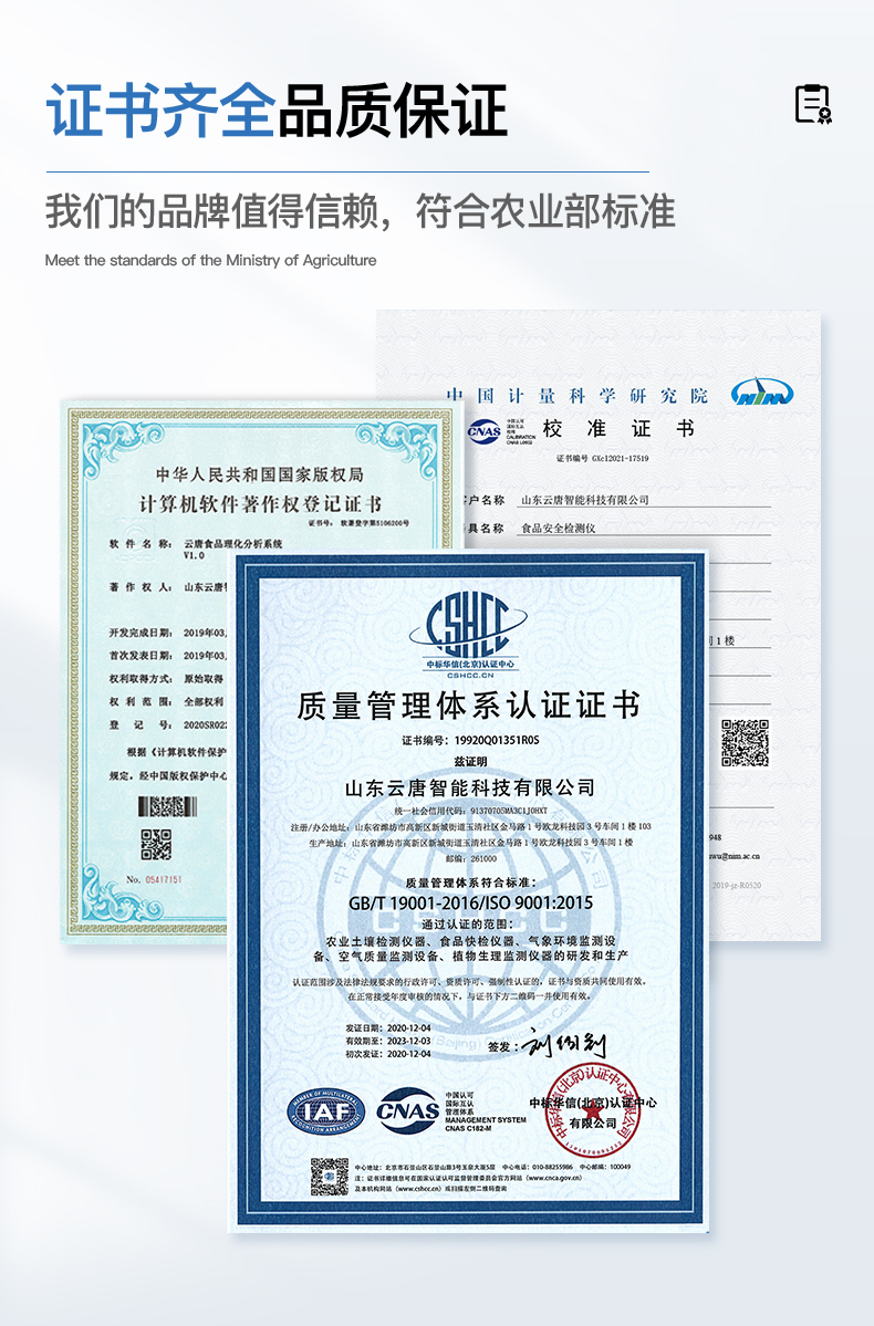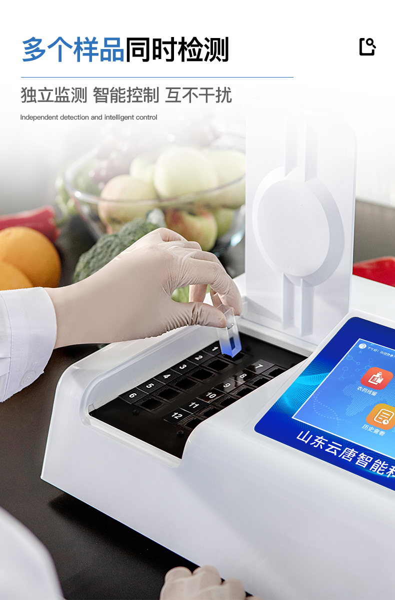 | 安卓智能操作系統,采用更加**和人性化操作,儀器具有網線連接、wifi聯網上傳、GPRS無線遠傳功能,快速上傳數據。 | 智能化程度高,儀器具有自檢功能:具有開機自檢和調零功能,具有自動檢測重復性功能。 | 檢測通道:≥12個檢測通道,可以同時測試多個樣品,每個樣品由程序控制分別獨立工作,不會互相干擾。 | 顯示方式:≥8英寸液晶觸摸屏顯示,人性化中文操作界面,讀數直觀、簡單。 | 配備新一代嵌入式熱敏打印機,可選擇手動打印或者自動打印,檢測完成可自動打印檢測報告和二維碼。 | 光源采用進口超高亮發光二極管,高精度、穩定性強、光源可控、可以關掉不使用的光源,功耗更低。 | 采用USB2.0接口設計,方便數據的存貯和移動,并可隨時與計算機直接相連,并且可用計算機控制儀器。實現數據查詢、瀏覽、分析、統計、打印等。 | 儀器帶有監管平臺。數據可局域網和互聯網數據上傳,檢測結果直接傳至食品安全監管平臺。進行區域食品安全監管及大數據分析處理,檢測區域食品安全長短期動態,達到食品安全問題預估、預警 | 一體化便攜式快檢設備,滿足現場及流動檢測使用需求,能夠在同一軟件下實現所有檢測項目的檢測,并可通過同一窗口直觀顯示檢測結果。 | 儀器具有多品類多種類樣品菜單庫,可靈活選擇檢測樣品,不同的檢測通道可同時檢測不同的樣品項目。也可在儀器上直接編輯錄入樣品名稱、檢測指標、送檢單位等信息并保存進樣品數據庫。 | 樣品處理簡單省力,整體操作快速、安全、便捷。 | 儀器具有自身保護功能,可設置用戶名及密碼,防止非工作人員操作等。 | 高靈敏度,高檢測精度,高重復性精度,掃描式高精度光學傳感器。 | 內置強大的數據庫,可在儀器上直接選擇樣品名稱、檢測指標、送檢單位等信息,也可在儀器上直接編輯錄入樣品名稱、檢測指標、送檢單位等信息并保存進樣品數據庫。 | 儀器具有重新校準、鎖定、恢復出廠設置功能。 | 支持U盤存儲。 結果判定線可修改,對照值標定值可保存,斷電不丟失數據。 |