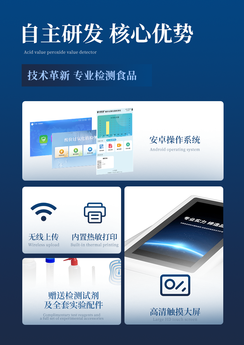 產品介紹: 山東云唐智能科技有限公司生產的酸價過氧化值檢測儀為集成化食品安全快速檢測分析設備,采用臺式一體化設計,能夠快速檢測食用植物油、食用豬油、花生油、葵花油、米糠油、食品、肉制品中的過氧化值及酸價含量;儀器預留其他項目檢測程序和端口,根據日后需求可進行遠程升級。 該過2025-12-07